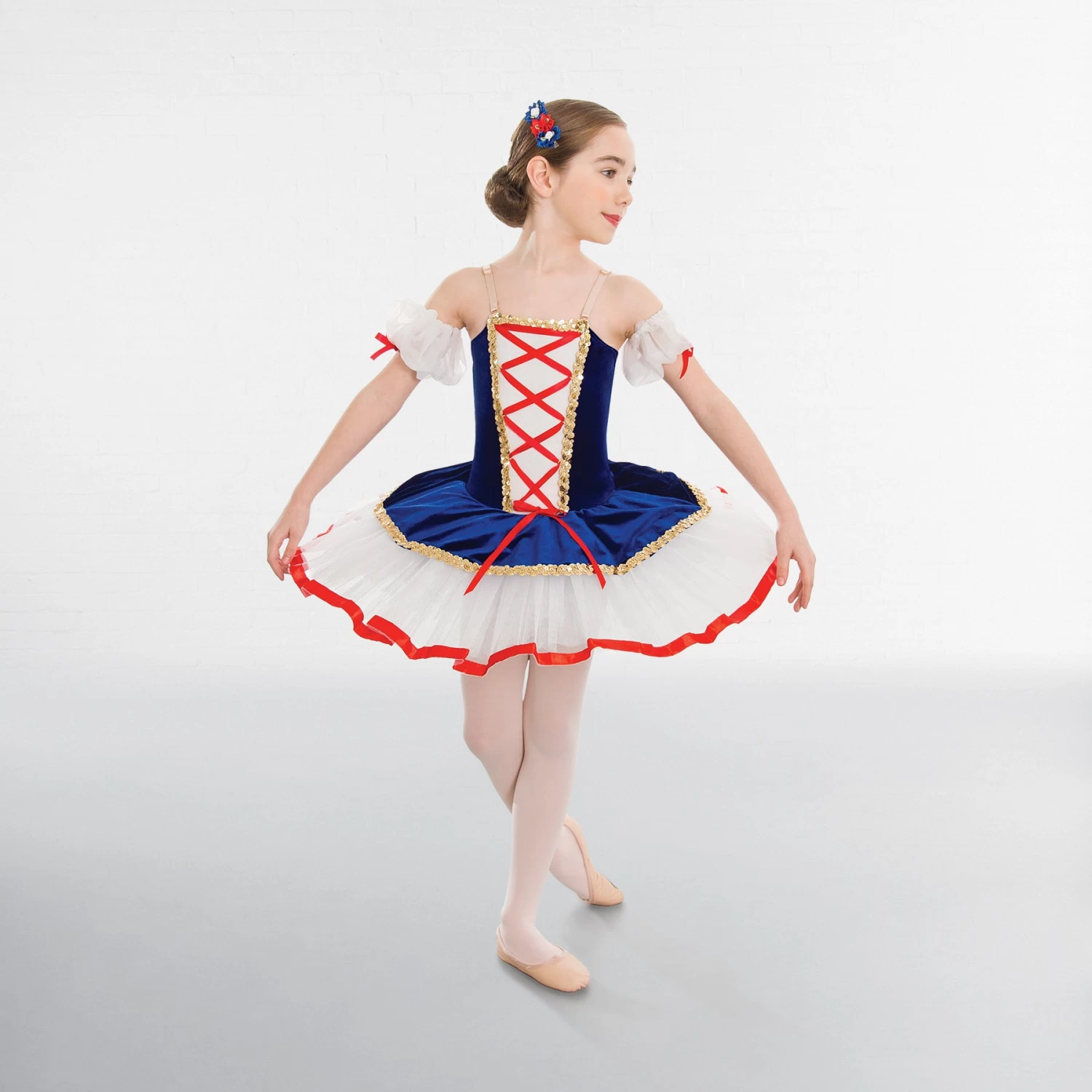 Perfect for national and character themed ballets, this colourful ribbon corset tutu from 1st Position perfectly showcases a dancer’s personality.
