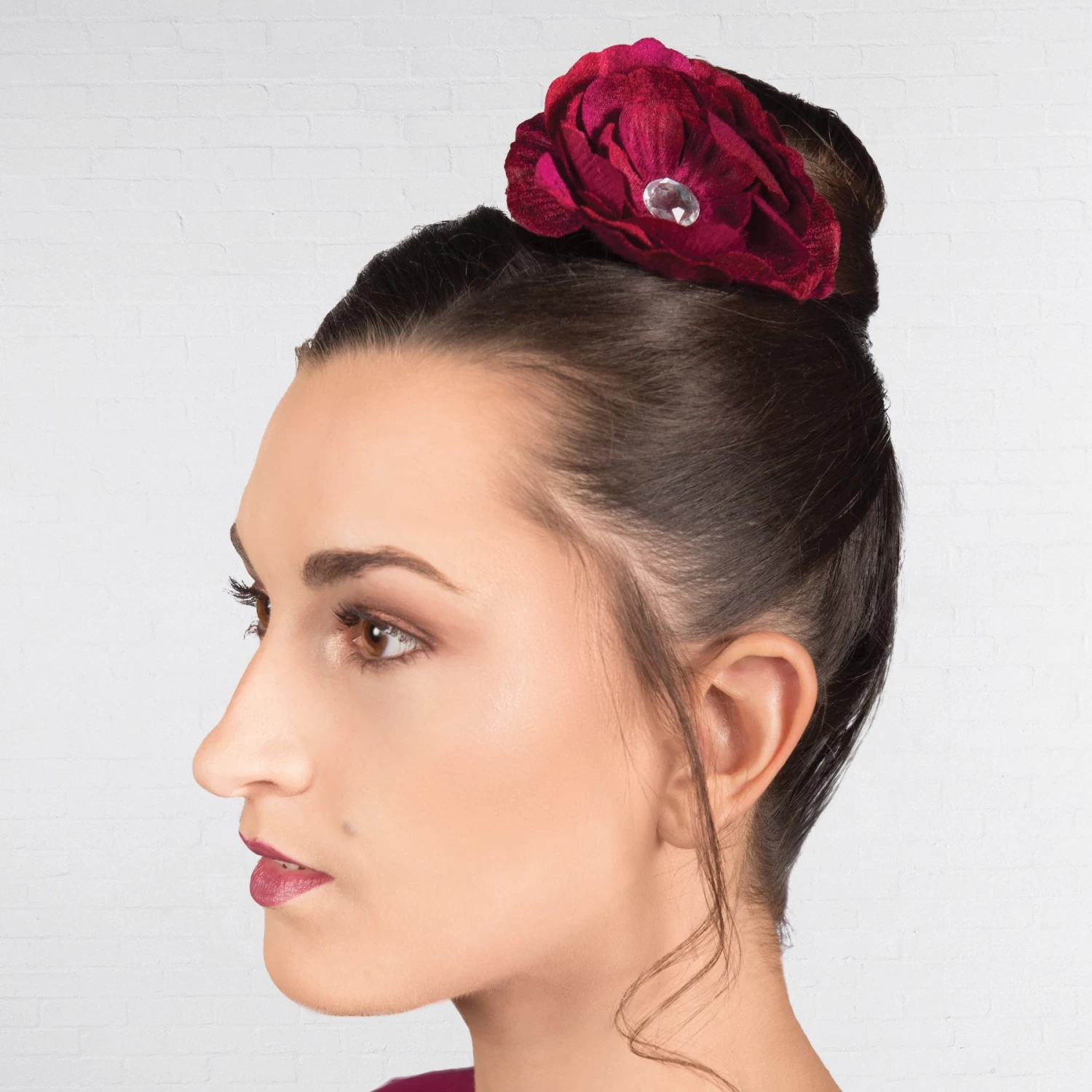 - Matching coloured flower on hairclip with gem centre included