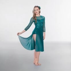 - Calf length mesh skirt with two full slits at each side showing off the fully sequin hot pant shorts underneath