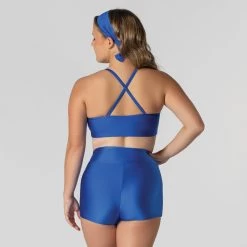- This three-piece provides fantastic versatility, comprising shorts, crop top and shirt.