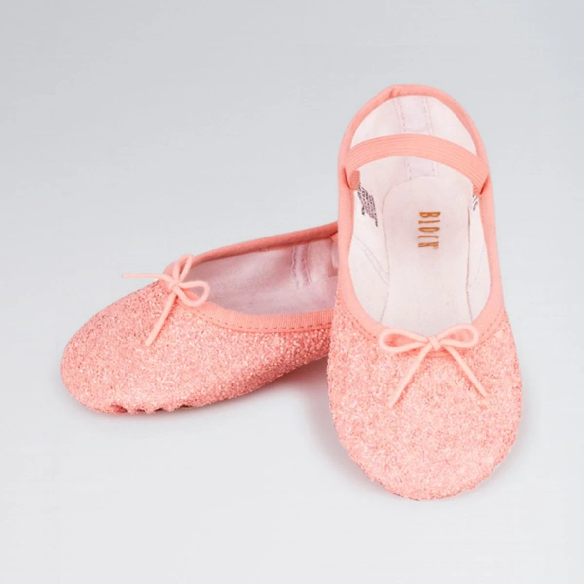 * Classic introductory full sole ballet flat set apart with its sparkle fabric